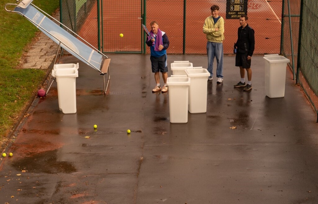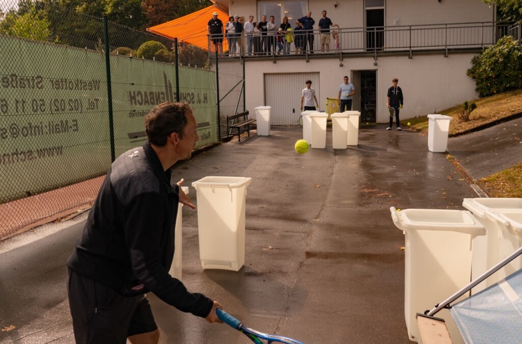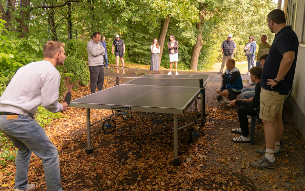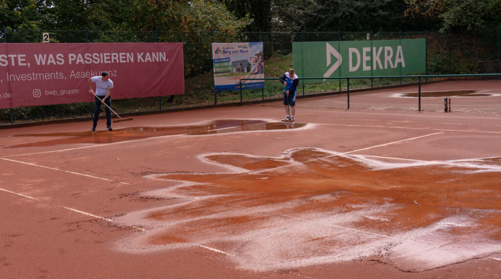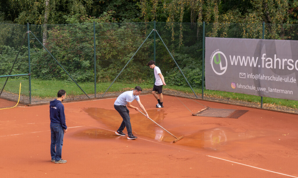 Nach den Schauern wurde die Wartezeit, bis die Plätze trockneten, für heitere Tennis-Pong-Begegnungen und kurzen Tischtennis-Matches genutzt. Auch die Sonne schien rasch wieder, als wäre nichts geschehen.