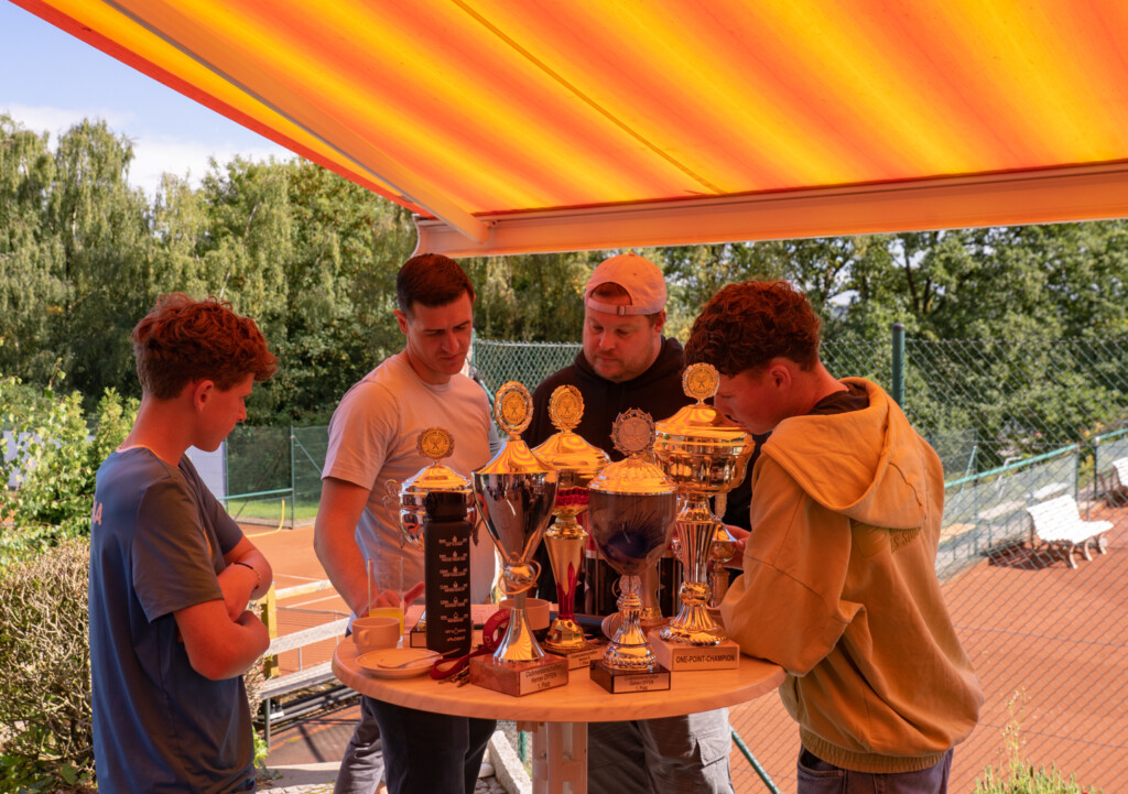 Die anschließende Siegerehrung fand dann auf der Clubterrasse statt. Nach kurzer Ansprache von Marcel Frangen im Namen der Abteilungsleitung, in der er allen Helfern und Organisatoren herzlich dankte, kam dem Turnierorganisator Moritz Tomann die ehrenvolle Aufgabe der Siegerehrung zu. Alle ausgezeichneten Spieler haben sich sehr über Pokale, Urkunden und Preise gefreut.